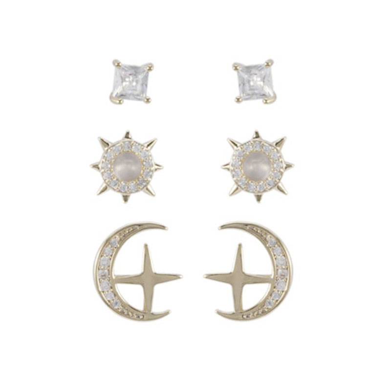 You are here: Home » Products » Earrings » 3-pair Set » In-stock Multi-piece Sun And Moon Set Cz Earrings$2.07~2.5
